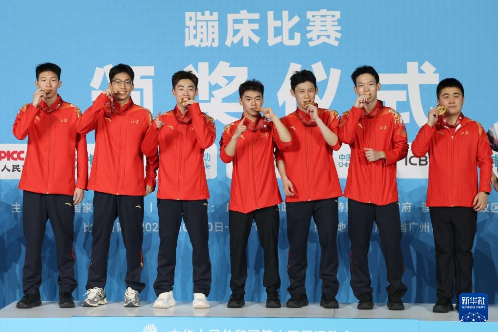 10月11日,冠军江苏队队员出席颁奖仪式。当日,第十五届全运会蹦床男子团体决赛在广州举行。新华社记者卢汉鑫摄 10月11日,江苏队冠军成员在颁奖仪式上。当日,第十五届全运会蹦床男子团体决赛在广州举行。新华社记者卢汉鑫摄 10月11日,浙江队亚军队员在颁奖仪式上。当日,第十五届全运会蹦床男子团体决赛在广州举行。新华社记者卢汉鑫摄 10月11日,第三名湖南高速代表队队员在颁奖仪式上。当日,第十五届全运会蹦床男子团体决赛在广州举行。新华社记者 摄 卢汉鑫 10 月 11 日,江苏队队员杨金一(左)在球场庆祝他游戏。最终,江苏队夺得冠军。当日,第十五届全运会蹦床男子团体决赛在广州举行。新华社记者卢汉鑫摄 10月11日,江苏队队员孙一辰在比赛中。最终,江苏队夺得冠军。当日,第十五届全运会蹦床男子团体决赛在广州举行。新华社记者卢汉鑫摄 10月11日,江苏队队员钱宇凡在比赛中。最终,江苏队夺得冠军。当日,第十五届全运会蹦床男子团体决赛在广州举行。新华社记者卢汉鑫摄 10月11日,江队队员苏王紫飒在比赛中。最终,江苏队夺得冠军。当日,第十五届全运会蹦床男子团体决赛在广州举行。辛赫摄UA社记者卢汉鑫10月11日,江苏队队员杨进也在比赛中。最终,江苏队夺得冠军。当日,第十五届全运会蹦床男子团体决赛在广州举行。新华社记者卢汉鑫摄 10月11日,浙江队队员王家洋在比赛中。最终,浙江队获得亚军。当日,第十五届全运会蹦床男子团体决赛在广州举行。新华社记者卢瀚鑫摄 10月11日,浙江队队员陈昱涵在比赛中。最终,浙江队获得亚军。当日,第十五届全运会蹦床男子团体决赛在广州举行。新华社记者卢汉鑫摄 10月11日,浙江队队员于伟杰在比赛中。最终,浙江队获得亚军。同日,蹦床男子团体决赛第十五届全运会在广州举行。新华社记者卢汉鑫摄 10月11日,浙江队队员赵政在比赛中。最终,浙江队获得亚军。当日,第十五届全运会蹦床男子团体决赛在广州举行。新华社记者卢汉鑫摄 10月11日,湖南快运队队员胡康旭在比赛中。最终,湖南高速获得第三名。当日,第十五届全运会蹦床男子团体决赛在广州举行。新华社记者卢汉鑫摄 10月11日,湖南快运队队员严朗宇在比赛中。最终,湖南高速获得第三名。当日,第十五届全运会蹦床男子团体决赛在广州举行。新华社记者 卢汉鑫 摄