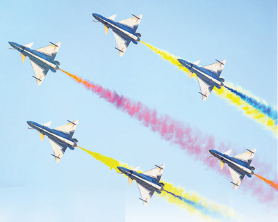 在第十一届空军航空公开赛暨长春航展上,空军八一飞行表演队进行了飞行表演。邹新江 摄
